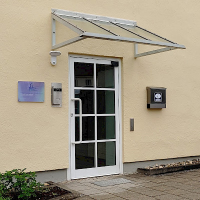 Der Eingang zur Praxis befindet sich an der Seite (von der Münchner Straße aus links).